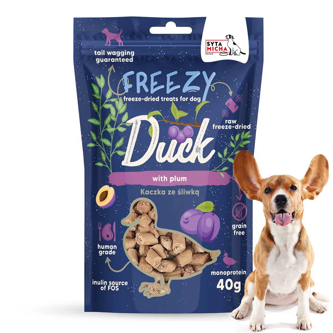 Wzbogać dietę swojego pupila o zdrową i smakowitą przekąskę – wybierz FREEZY Kaczka ze śliwką 40 g od Sytej Michy!